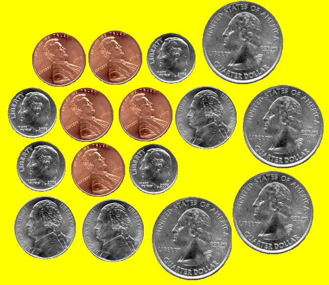 Can you count how many dollars and cents are there in the pictures bellow?